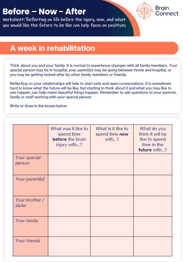 Learn moreHelp the child to reflect on life before the injury, now and what the child would like the future to be like