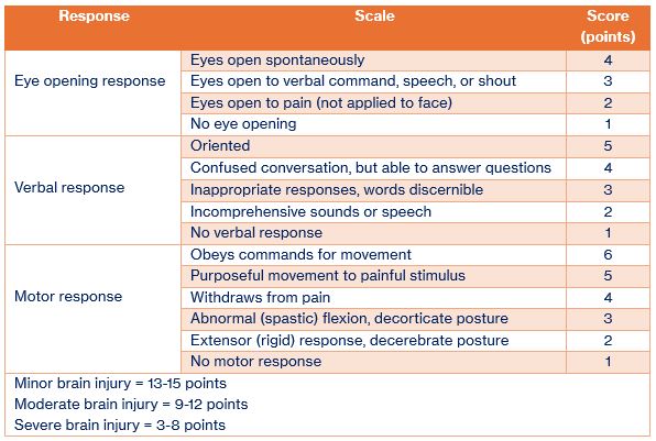 Scores are from a minimum of 3 (totally unresponsive) to a maximum of 15 (responding as normal).