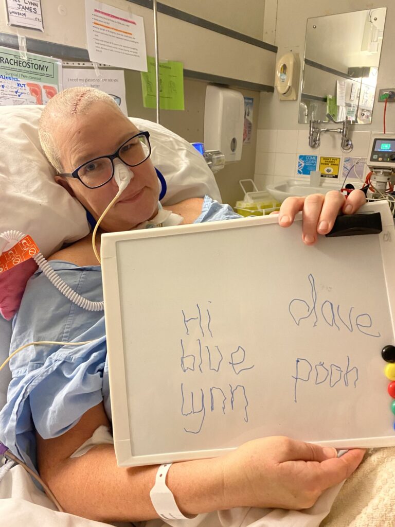 When Lynn woke from her coma, Dave helped her communication by giving her a whiteboard and marker to practice writing words he said.